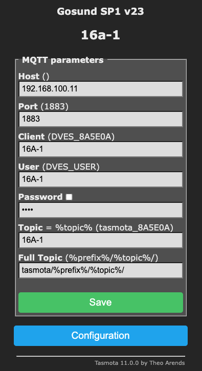 Important to mention is the Full Topic tasmota/%prefix%/%topic%/ which we’ll need later on.